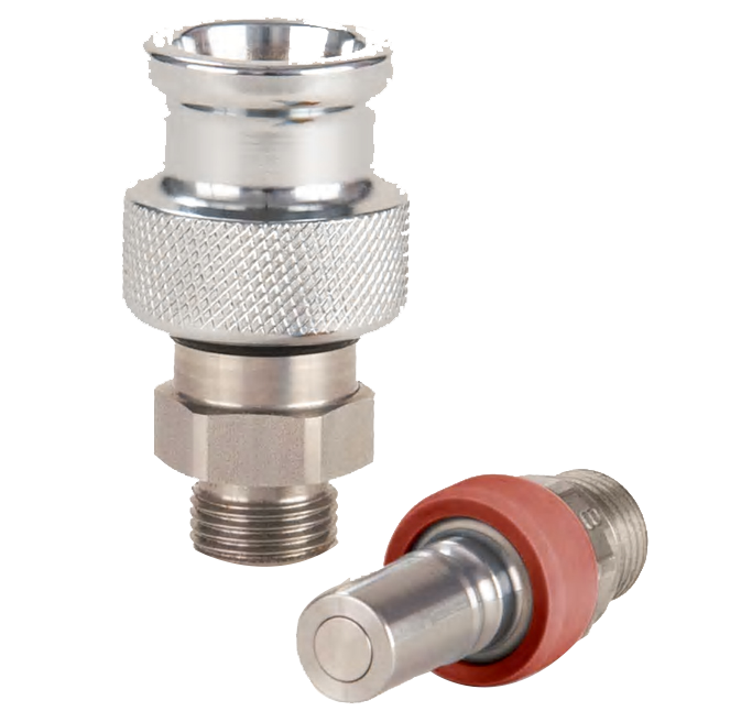 NSR 系列則是一款無溢流型快換接頭,它采用平齊端面閥芯設(shè)計,壓降損失 小,在連接或斷開時可減少溢流量和夾氣量。同時, 外部防塵套還能防止灰塵、 水等污染物在連接時進入管路內(nèi)部。該系列接頭通過歐洲 DIN EN61373:1999 抗震動標準,適用于軌道交通行業(yè),為制動系統(tǒng)的可靠性保駕護航。